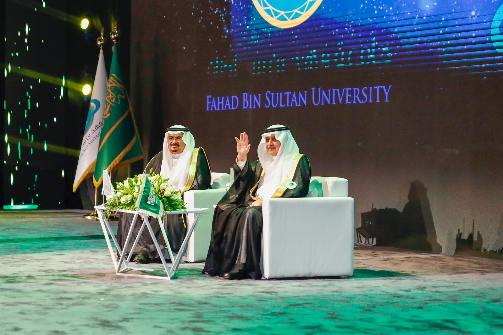 رعى صاحب السمو الملكي الأمير فهد بن سلطان بن عبدالعزيز أمير منطقة تبوك رئيس مجلس أمناء جامعة فهد بن سلطان ، بحضور صاحب السمو الملكي الأمير خالد بن سعود بن عبدالله الفيصل بن عبدالعزيز نائب أمير منطقة تبوك ، مساء اليوم، حفل تخريج الدفعة 16 لحملة البكالوريوس، والدفعة الـ11 لحملة الماجستير، من طلاب وطالبات جامعة فهد بن سلطان والبالغ عددهم أكثر من 400 خريجاً وخريجة، وذلك بمقر الجامعة.