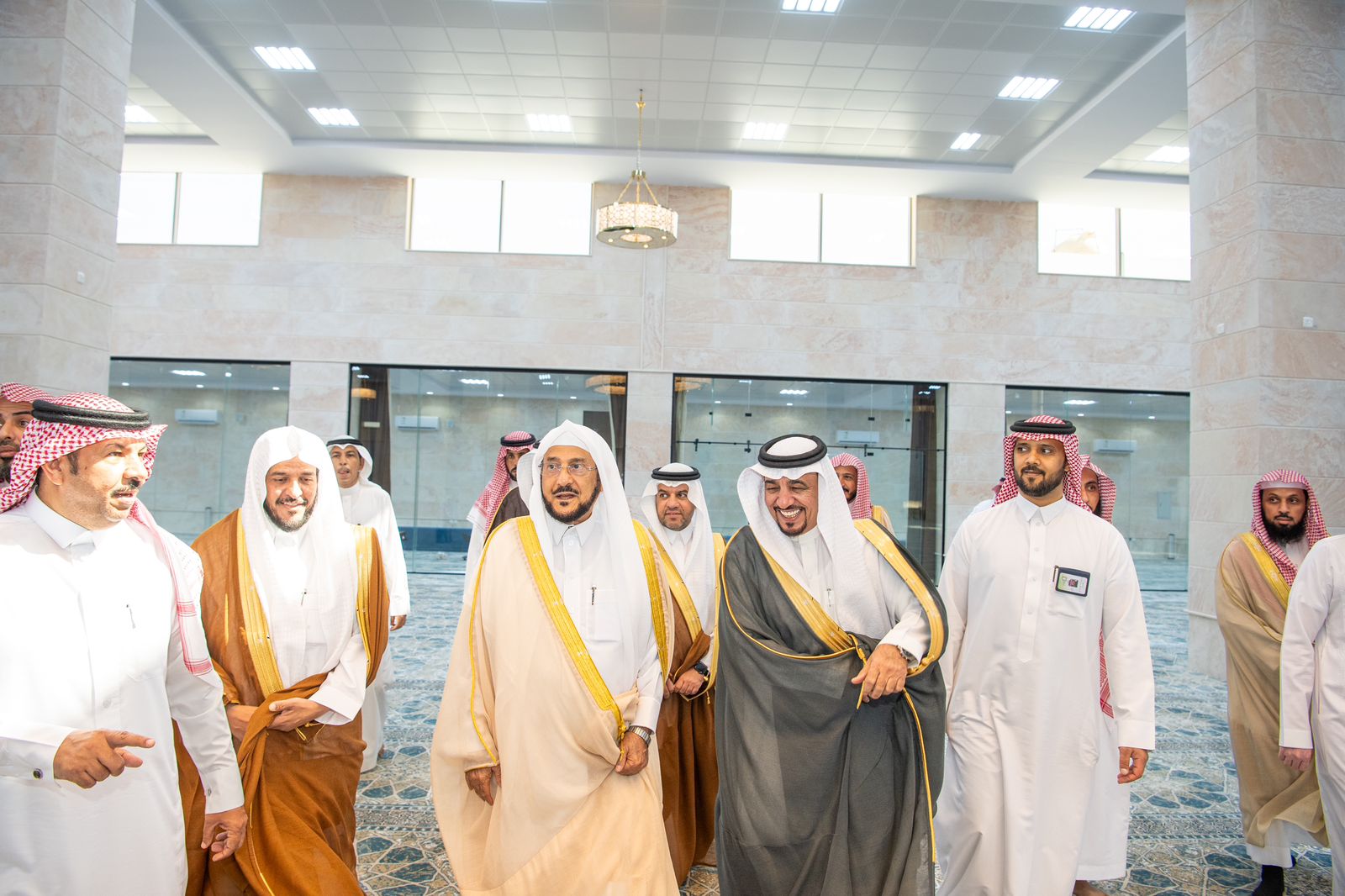 وتجوّل معاليه بأرجاء الجامعين ومرافقهما، واستمع لشرح مفصل عن إنشاءهما على الطراز المعماري السلماني، وعلى ما تشتمل عليه من مرافق وخدمات وأبرز المراحل التي مرت بها.