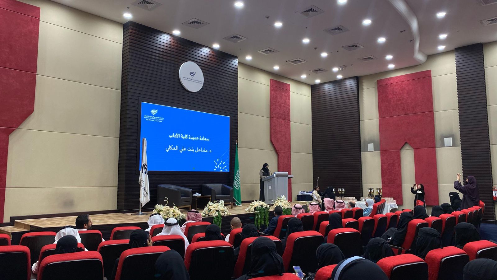 نظمت كلية الآداب ممثلة بقسم الاتصال وتقنية الإعلام بجامعة الإمام عبد الرحمن بن فيصل حفل لتكريم أرباب العمل للتدريب الميداني لطالبات قسم الاتصال وتقنية الإعلام بالمنطقة الشرقية، وعرض لتجارب الطالبات الميدانية ويصاحبه معرض لمشاريع التخرج، وذلك بحضور عميدة كلية الآداب د. مشاعل العكلي ورئيسة قسم الاتصال وتقنية الإعلام د.ندى آل مبارك ومدير الإدارة العامة للعلاقات والإعلام د. طفيل اليوسف والوكيلات ورئيسات الأقسام وأرباب العمل ومشرفي التدريب الميداني.