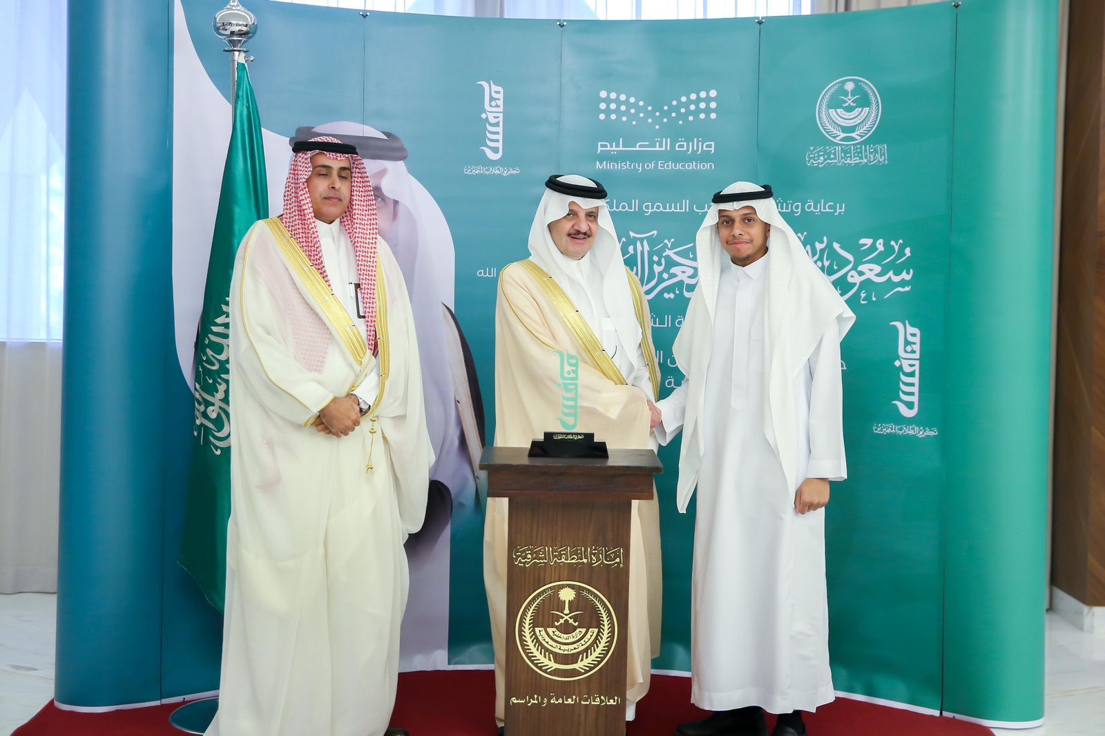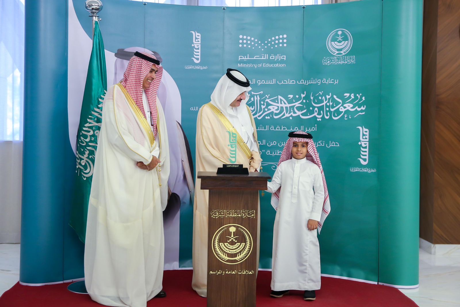كرّم صاحب السمو الملكي الأمير سعود بن نايف بن عبدالعزيز أمير المنطقة الشرقية بديوان الأمارة اليوم الأحد الطلاب والطالبات المتميزين والفائزين بالجائزة الوطنية (منافس) بتعليم المنطقة الشرقية، والتي أطلقتها وزارة التعليم في نسختها الأولى، وتأتي ضمن الجوائز المواكبة لبرنامج تنمية القدرات البشرية من أجل بناء طلاب متميزين ومبادرين ومنافسين عالمياً، كما تهدف إلى اكتشاف الطلاب المتميزين في عدد من المسارات لتساهم في تحسين نواتج التعلم ورعاية المواهب ودعم الإبتكار والإبداع الريادي .