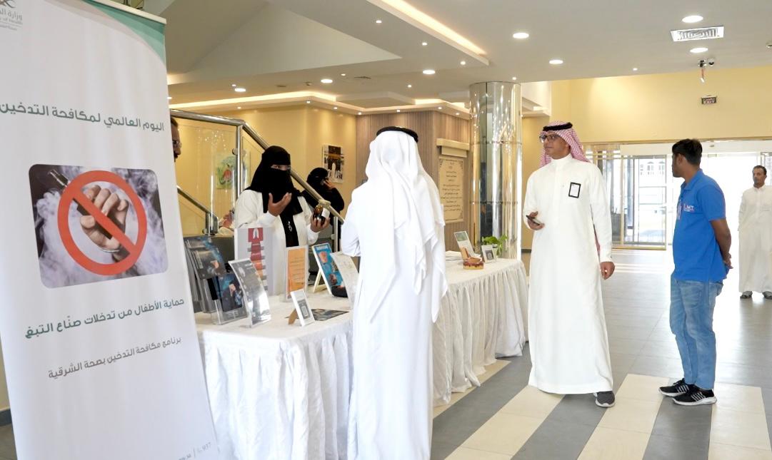 وقف مدير عام التعليم بالمنطقة الشرقية الدكتور سامي العتيبي، صباح اليوم على برنامج التوعية باليوم العالمي لمكافحة التدخين 2024 والركن المصاحب له والذي تنظمه إدارة تعليم المنطقة ممثلة في قسم الشؤون الصحية المدرسية بالتعاون مع المديرية العامة الشئون الصحية بالمنطقة تحت شعار "حماية الأطفال من تدخلات صناع التبغ" والذي يمتد على مدى يومين بمقر بهو تعليم المنطقة.