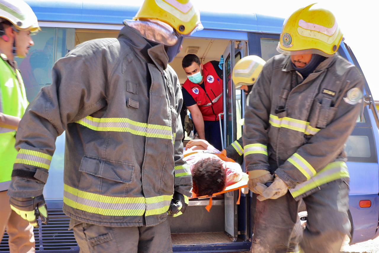 نفذت هيئة الهلال الاحمر السعودي بمنطقة تبوك يوم أمس الأثنين 1445/11/12 هـ. الموافق 2024/5/20 م ، فرضية حادث انقلاب باص ركاب متعدد الإصابات، على طريق عمان.