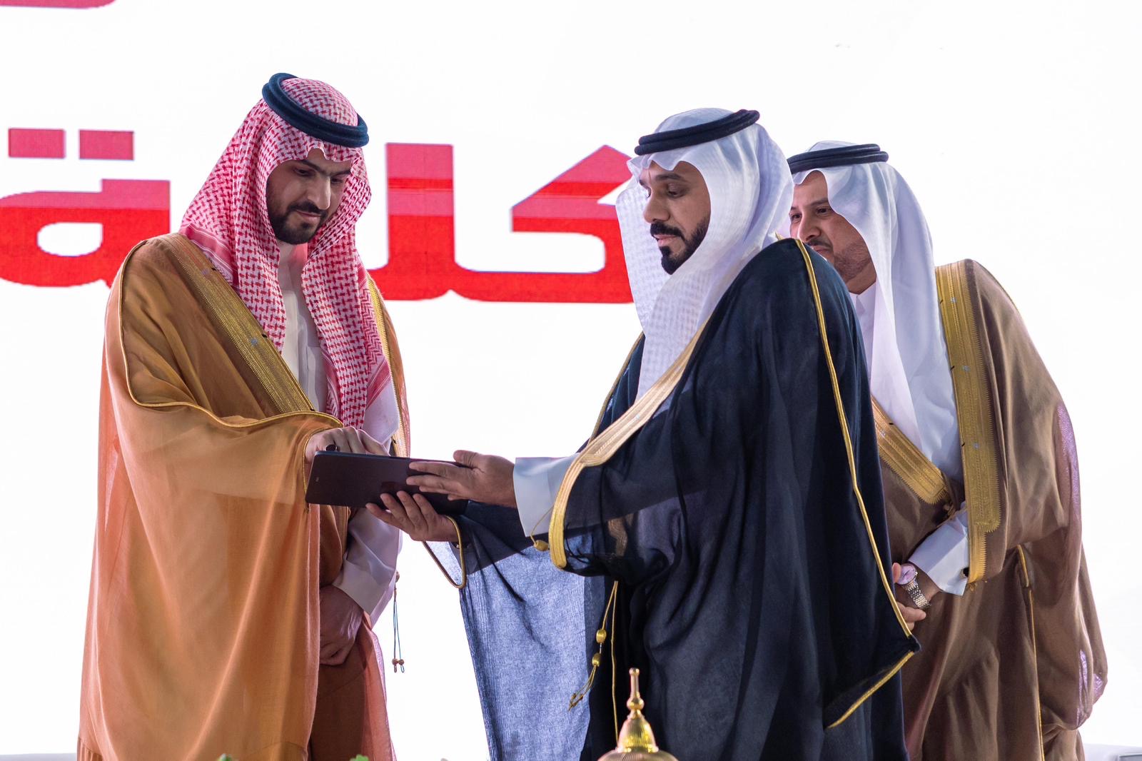 وكان في استقبال سموه لدى وصوله مقر الحفل سعادة رئيس جامعة حفر الباطن الأستاذ الدكتور خالد بن باني الحربي، ووكلاء الجامعة.