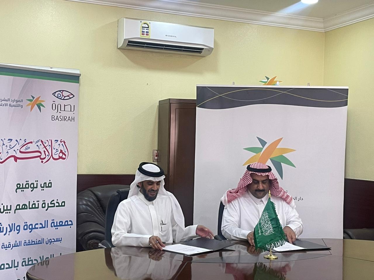 أبرم "دار الملاحظة الإجتماعية" بالدمام شراكة مجتمعية، بحضور مدير الدار الأستاذ سعيد بن صالح الشهراني، مع "جمعية الدعوة والإرشاد" بـ "سجون المنطقة الشرقية" "بصيرة" بحضور الأستاذ عبدالرحمن بن علي القرني نائب رئيس مجلس الادارة، والأستاذ أحمد بن علي الشهري المدير التنفيذي للجمعية.