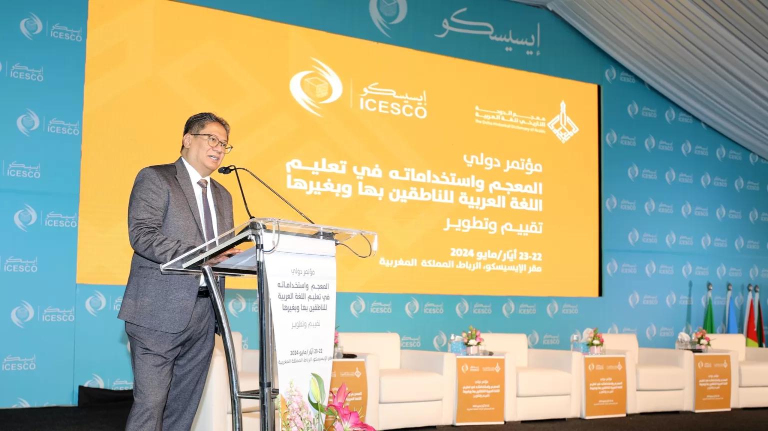 وفي كلمته خلال الجلسة الافتتاحية للمؤتمر، أكد الدكتور سالم بن محمد المالك، المدير العام للإيسيسكو، أهمية موضوع المؤتمر الذي تتشابك فيه العلوم لخدمة اللغة العربية الثرية وتعزيز حضورها العالمي، مبرزا أن المعجم لا يهدف إلى حفظ اللغة بقدر ما يحقق فهمها في سياق تعلمها وتعليمها، وللدرس والبحث في التحولات العلمية والفكرية والاجتماعية، ومدى حيوية المجموعة البشرية المستخدمة لهذا المعجم.