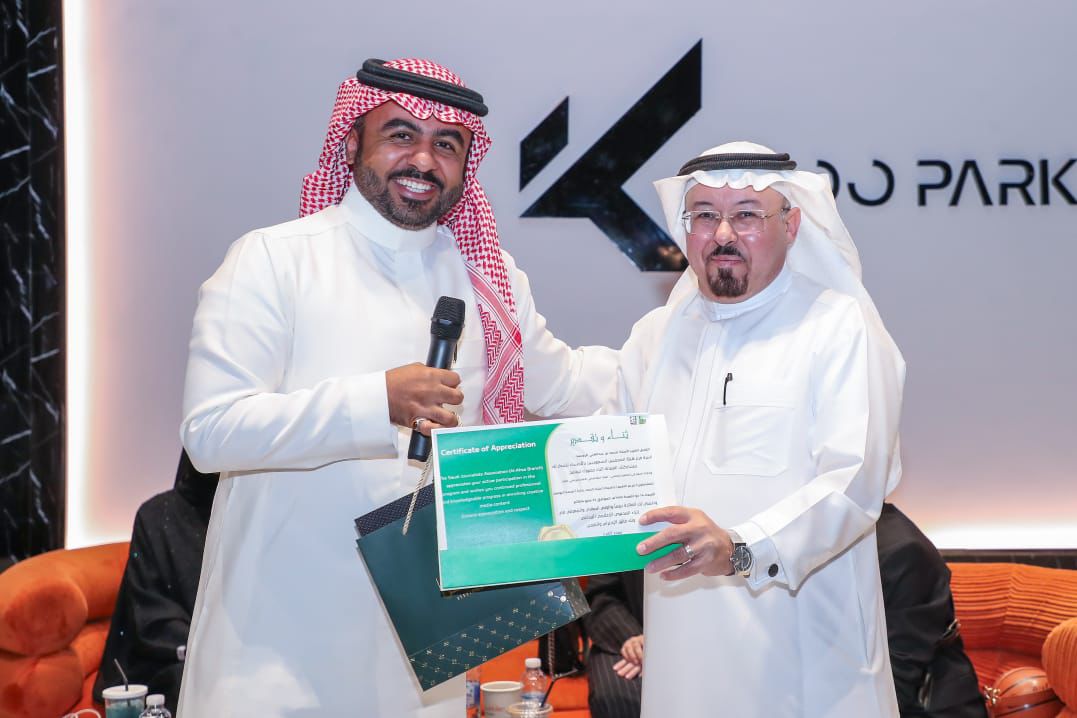 من جانبه تحدث رئيس مجلس الإعلام الرياضي بفرع هيئة الصحفيين السعوديين بالأحساء الأستاذ صادق بن محمد الحرز، قائلاً: صالون جميل تزين بحضوركم جميعاً .. وازداد جمالاً بضيوفه المميزين والذين تحدثوا بشفافية فكان هذا الحوار الرائع والذي أداره بكل اقتدار الزميل الأستاذ محمد الرويشد .. وأود من خلال هذه الكلمة أن أقدم الشكر الجزيل إلى مستضيف هذه الأمسية نادي كيو بارك ومديره الرائع الأستاذ حسام البراهيم .. والذي أخجلنا بكل ما يقدمه للمجلس من كرم الضيافة وروعة المكان .. والشكر موصول إلى كل من شارك في الإعداد لهذا الصالون حتى رأيتموه بهذه المخرجات الجميلة .. انهم زملائي أعضاء مجلس الإعلام الرياضي بفرع هيئة الصحفيين السعوديين بالأحساء والشكر موصول إلى سكرتير فرع هيئة الصحفيين السعوديين بالأحساء الأستاذ حسن المعني .. وكلمة شكر لا تفي بما يقدمه قائد فرع هيئة الصحفيين بالأحساء الأستاذ عادل بن سعد الذكر الله من دعم ومتابعة غير محدود فهذا الرجل متميز بعطائه وقيادته وشغفه الذي لا ينتهي دعماً للإعلام والإعلاميين ليس في الأحساء فقط ولكن في هذا الوطن المعطاء. بعدها تم تكريم ضيوف الصالون ومدير الحوار بالدروع التذكارية والهدايا و التقطت الصور التذكارية الجماعية و الثنائية.